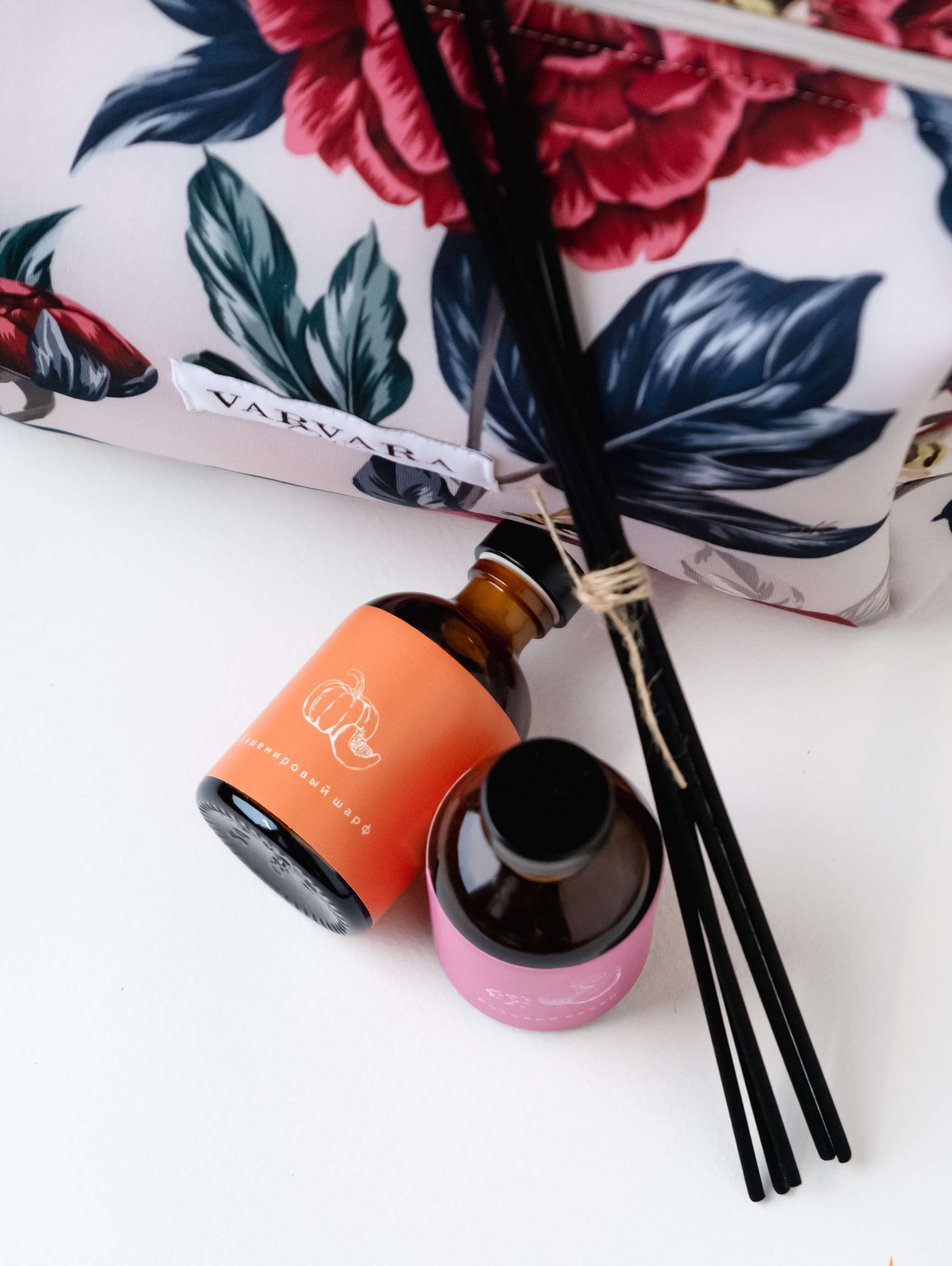 Gift set with Varvara cosmetic bag and 'Glow' diffuser (fragrance of choice: 'pink evening' or 'cashmere scarf').